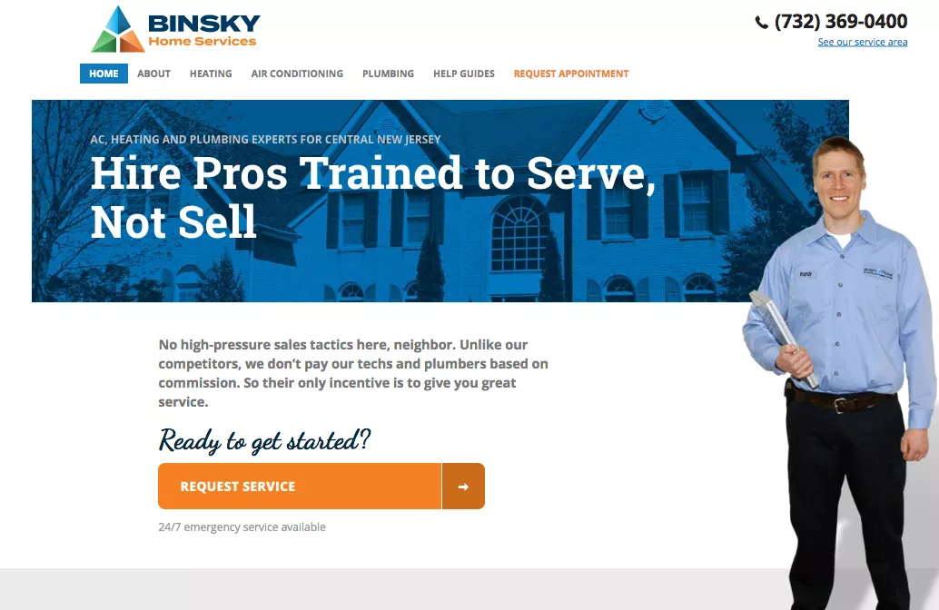 They said, “Because we don’t pay our techs and plumbers based on commission.” Bingo! Proof behind the promise. Homeowners can trust a technician that’s genuinely trying to help them, not sell to them. So I worded their home page headline like this: