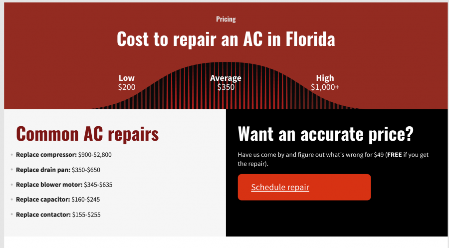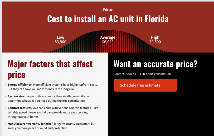 And you can also list the major factors that affect the price. I’ve never encountered an HVAC service that was too complex to break the price down into a few major factors. Here’s how we presented price with our client Red Cap Plumbing & Air:
