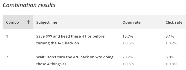 When we create emails for clients, we often do an A/B test (a test comparing two variations of one element) on subject lines to see which tactics perform better.